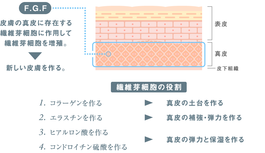 *:「F.G.F.(Fibroblast Growth Factor)」とは、線維芽細胞増殖因子と呼ばれる物質です。